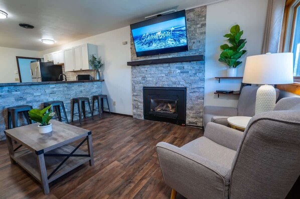 All guest rooms at 2 King Bed Charming Mountain Retreat Close to Mtn have comforts, such as fireplaces, as well as amenities, such as offices and dining tables.