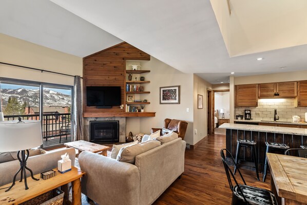 TV, fireplace - Mountain Comfort for the Whole Crew – 4-Bedroom Condo at Timber Run Near Steambo (Steamboat Springs)