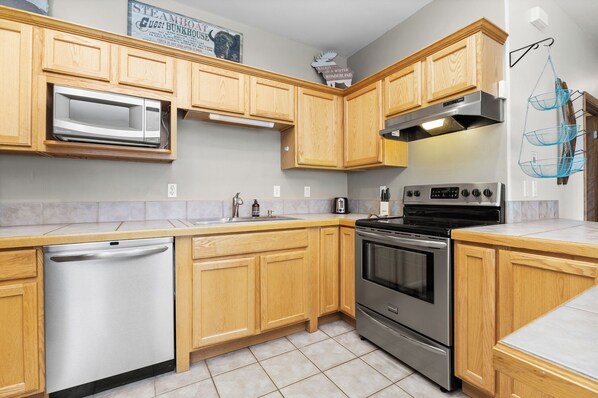 Electric Vehicle Friendly: With a designated EV charger in the garage, guests no longer must stop at the public EV chargers in town. They can just arrive at the condo and plug in.
