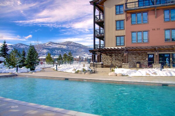 A heated pool - Steps to Private Gondola-HeatedPool-3 HotTubs-Gym-TownShuttle-Garage-GameRoom-Fireplace-W/D-Elevator (Steamboat Springs)