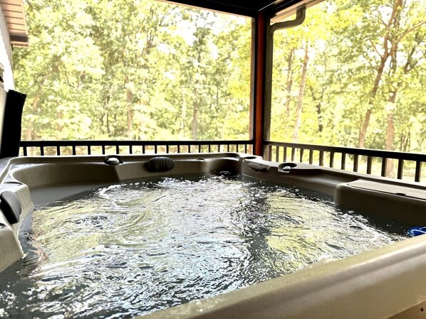 Indulge in the ultimate relaxation on the screened-in porch, where you'll find a hot tub waiting for you. Whether you soak under the starry night sky or enjoy a rejuvenating morning dip, this tranquil oasis is sure to enhance your vacation experience.