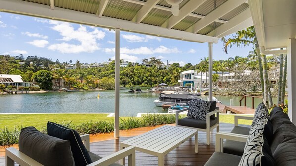 Create everlasting holiday memories at this nature-inspired retreat, where the great outdoors becomes your playground. From the moment you step onto the property, the unmistakable feeling of being on holiday washes over you. Just a few steps away, your toes can sink into the sand, and on one side awaits a convenient boat ramp designed for easy access to the water – perfect for pulling a tinny onto dry land or launching stand-up paddleboards and jet skis for soft adventures from the canals to the Noosa River.