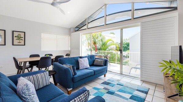 Top floor modern apartment with a fresh, modern feel throughout is now available for holidays. Modern kitchen overlooks the spacious living and dining area, which opens onto a wide, deep north facing balcony with glimpses of the beautiful Noosa River
