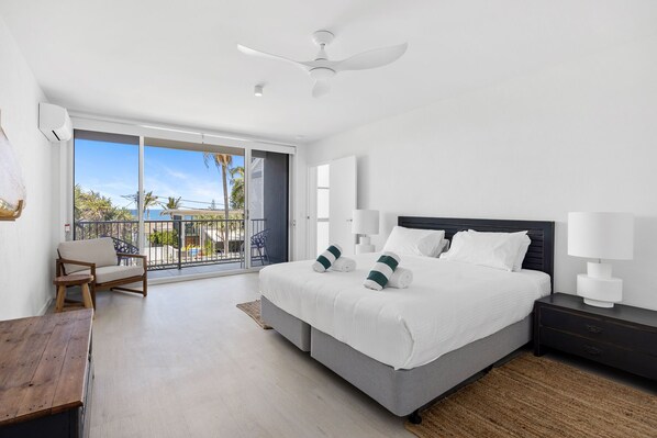 🛏️ Bedrooms Retreat: Rest easy in our thoughtfully designed bedrooms. The master bedroom features a king-size bed, a private balcony, a walk-in wardrobe, and a luxurious ensuite with twin basins and a spacious shower. Bedroom 2 offers a queen bed, while bedroom 3 provides two long single beds, all equipped with ceiling fans for your comfort.
