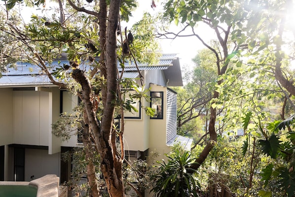 Escape to Sunshine Beach and unwind in this unique beach house, nestled amongst the trees. Enjoy your private pool, relax in the large bath or cozy up with a good book - perfect for a rejuvenating getaway.