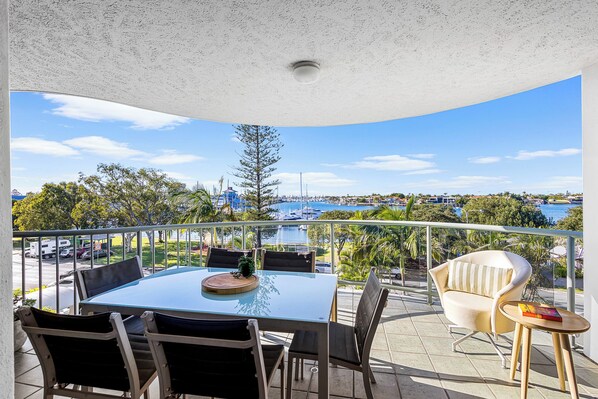 This waterfront apartment has 3 generous bedrooms with the Master Bedroom with ample wardrobe storage & an ensuite featuring a spa bath. The other two bedrooms have a Queen bed & single bed in each.