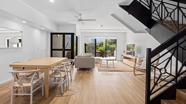 Escape to a beachside haven where the soothing symphony of rolling waves greets you each morning. Nestled in one of the region's most prestigious surf beaches, this three-bedroom townhouse is the epitome of the perfect family holiday retreat.