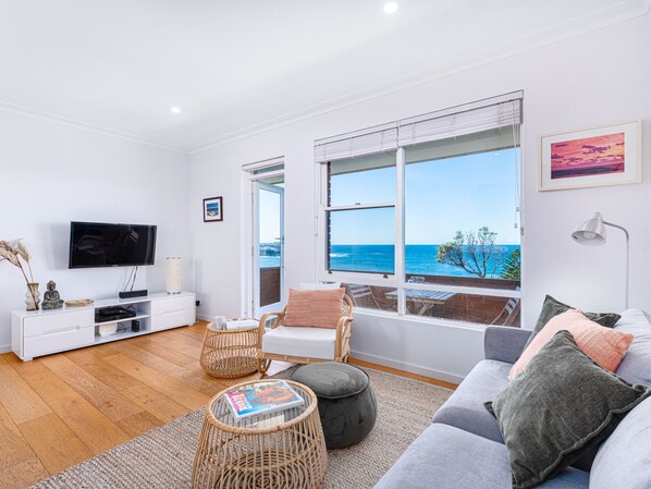 This bright and stylish air conditioned apartment has the added benefit of it s own off street parking space and has been completely refurbished capturing the laid back beach vibe synonymous with Tamarama. A modern fully equipped kitchen flows to the living and dining area with it s rich timber flooring and contemporary furnishings. The main balcony can be accessed directly from the main living area where you can enjoy the cooling summer breezes and sit and watch the migrating whales go by.