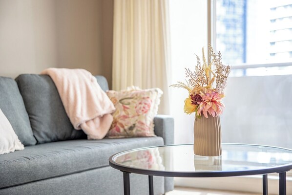 - A stylish self-contained layout with a King bed and a double-size sofa bed (please note, an additional fee applies for using the sofa bed).