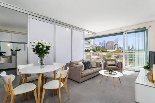 In the heart of Sydney's CBD, this modern apartment offers a private retreat with Harbour Bridge and Opera House views. Unwind on the outdoor balcony, cook up a storm in the modern kitchen or simply relax in air-conditioned comfort.