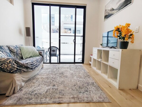 Premium location one bedroom APT with secure car parking - 5 mins Train, Shops provides laundry facilities and more. Guests can connect to free in-room WiFi.