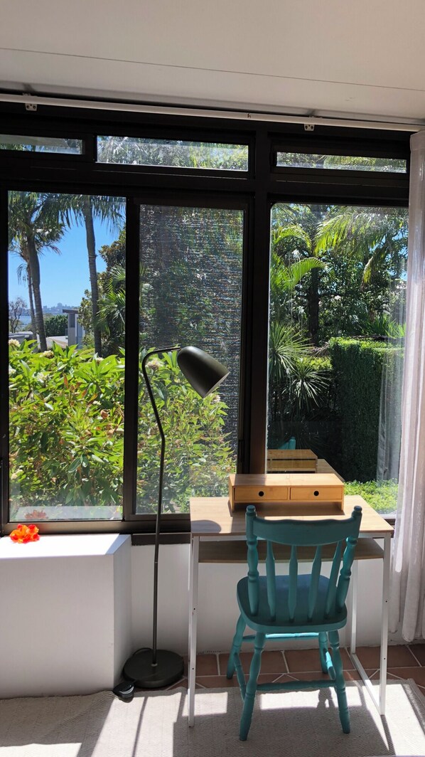 You will have a large, bright bedroom and a lovely sunroom surrounded by green trees, where you can enjoy your morning coffee, read, or simply relax. we provide a super strong fan upstairs in yours bedroom , and downstairs in the living room we have a ceiling fan . Also the private garden is a quiet retreat after a day at the beach , or exploring Mosman.