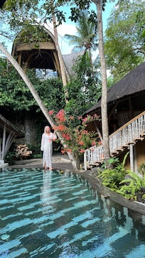 Ulaman Eco Luxury Retreat offers a tranquil experience with continental breakfast, spa, two restaurants, outdoor pools, tennis and pickleball courts, art gallery, and garden views. The concierge team assists with local arrangements.