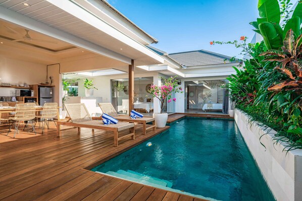 Recreational amenities at the villa include an outdoor pool.