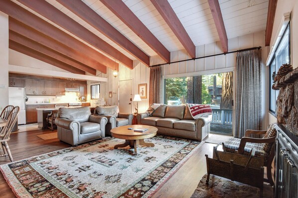 Gather around the living room after a long day where there's comfortable seating around a wood burning fireplace and Smart TV. Stream your favorite Netflix specials or pick out one of the board games to get some friendly competition going.