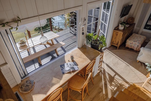 In June 2022, we completed our DIY tiny house build—a project that allowed us to embrace a minimalist lifestyle and create a cozy artist's nook. Our space offers seclusion from the busyness of Terrigal, providing you with the perfect environment to unwind, breathe, and let your creativity soar.