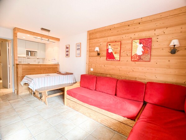 2-rooms apartment of 38m² equipped for 6 people and located on the 3rd floor with a lift in "Les Tommeuses" residence, in Tignes Val Claret. Ski in/out access, in front of ski garden.