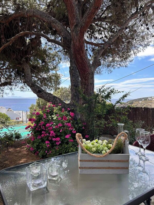 Our traditional 30 sqm house is located on the beautiful beach of Agios Romanos, 15 minutes from the port of Tinos and only 150 meters from the sea. It is furnished with 1 double bed and 1 set bed and can accommodate 2 to 3 people.