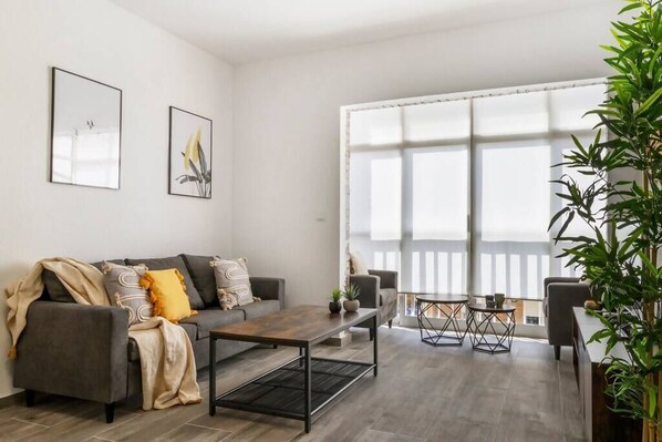 This modern apartment with a current design located a few meters from the beach sand, has a spacious and bright living-dining room where you will feel at home thanks to its comfortable sofa, Smart TV with international channels so you can watch your favorite channels even though you are not in your country, hot/cold air conditioning so you can regulate the temperature to your liking and a wonderful relaxation area, its glazed terrace which you can open in summer and be able to hear the soft sound of the sea or feel the breeze of our sea. Mediterranean which you can see from the apartment just a few meters away.