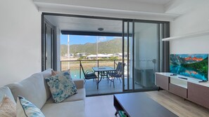 Waterfront apartment with kitchenette and balcony