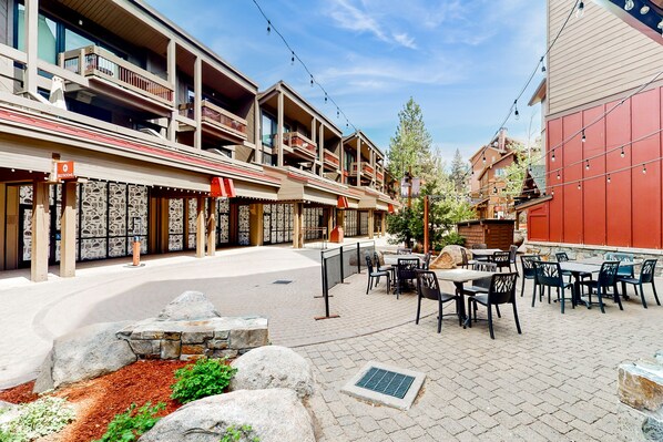 Outdoor dining - Alpine Hideaway | 3-Min Walk to Gondola & Steps to Dining | Pool & Hot Tub (Northstar - Truckee)