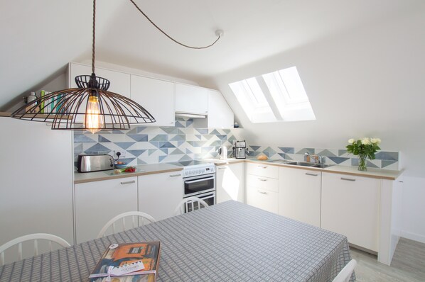 With stunning views over the hill to Porthtowan and out to sea, Sunfish is the perfect place to relax after long days exploring the Cornish coastline. Attractively decorate throughout, with a spacious open-plan living area for everyone to enjoy. The well-equipped kitchen comes with everything holiday makers need to cook up a home-made feast and the handy dishwasher makes cleaning up a breeze. Enjoy your scrumptious supper around the dining table and after clear the table and host a family game night, or move over to the comfortable sofas, get cosy and enjoy a movie.