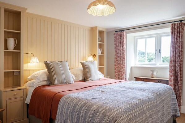 There are three bedrooms, a double bedroom with a super king, double bedroom with king size bed and an accessible twin bedroom with the option of zip and link super king on request and Egyptian cotton bed linen. Although not connected, please note that the accessible twin bedroom for Clements is located below Cowlands main bedroom.