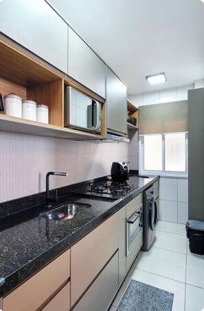 Private kitchen - 🌞 Modern apartment with barbecue near the seafront (Estufa I Ubatuba)