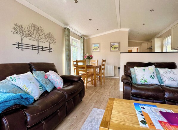 Modern and contemporary lodge style holiday home set in woodland area. One double with TV/DVD and en suite shower and one twin. Family bathroom with bath with overhead shower. Open plan kitchen and lounge/dining area. Washing machine. Doors leading to verandah with garden furniture and outdoor hot tub.. Crake Valley is part of our exclusive Bouja Luxury Boutique Breaks Collection, enjoying a beautiful, elevated setting above Coniston Water and commanding views of the Old Man of Coniston and the lush surrounding fells. This is a perfect base for those looking to escape the hustle and bustle amidst the tranquillity of Cumbria and the Lakes.