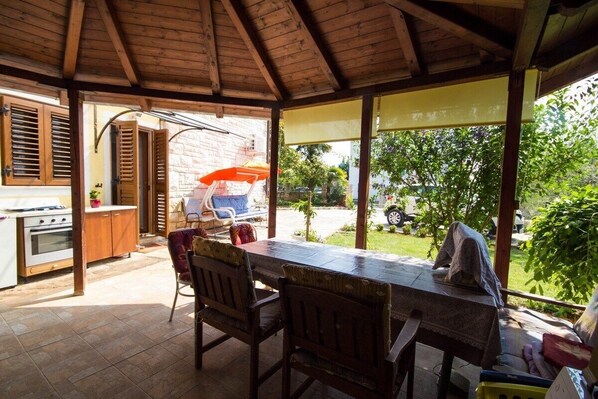 Mara Apartment House offers the perfect haven for small families in a peaceful location. The spacious, fenced courtyard is ideal for relaxation and fun, while the outdoor summer kitchen with barbecue invites shared meals and lasting memories.