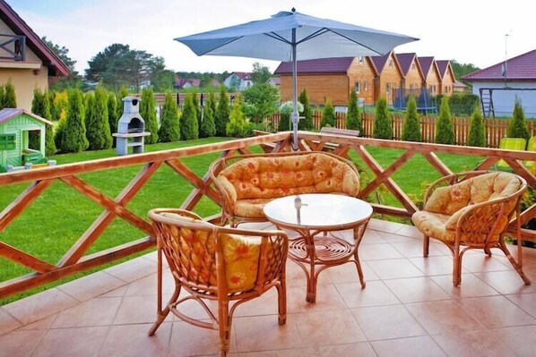 Half of holiday home, terrace, playground