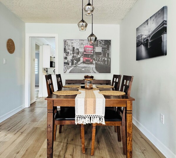 ✔️ Elegant Dining Area – A beautifully set table for family meals, quiet dinners, or morning coffee.