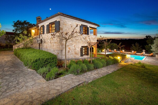 Nestled in rural Istria, Villa Fabina is a haven for relaxation. This rustic stone house offers four air-conditioned bedrooms, a spacious kitchen, and refreshing swimming pool surrounded by lush greenery. Enjoy quality time with loved ones on the covered terrace or unwind on sun loungers amidst soothing nature sounds.