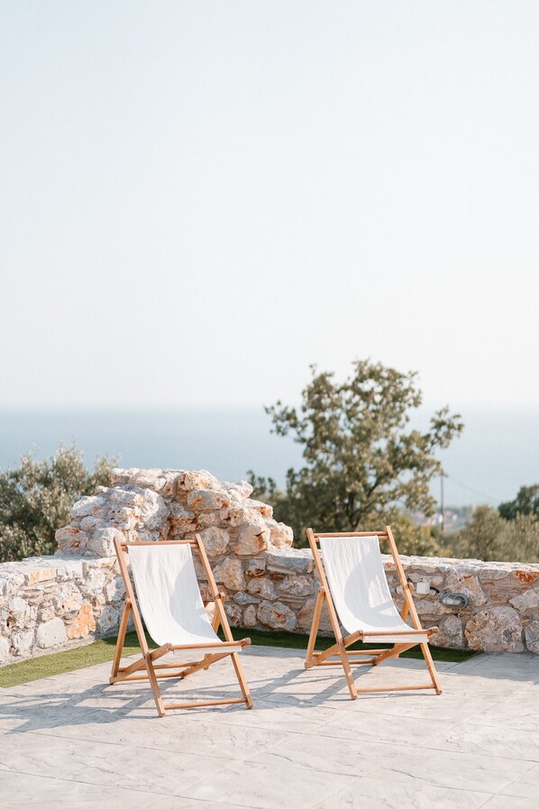 Terrace/patio - Dione Villa 2: private pool - amazing sea view - traditional minimal stone villa (Stoupa)