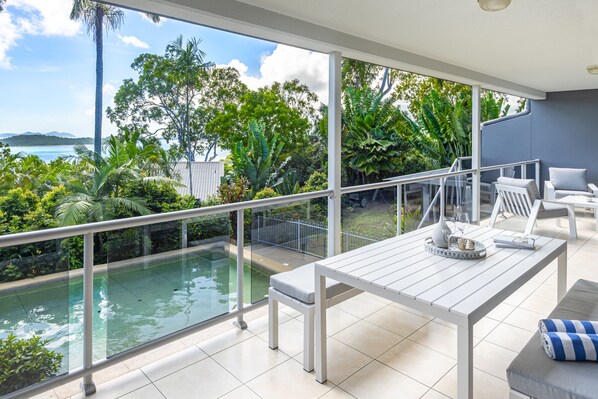 The apartment is centrally located, with easy access to the restaurants, shops, and activities on Hamilton Island's Front Street. You can also use the shared complex pool and BBQ facilities, which are just a few steps away from your door.