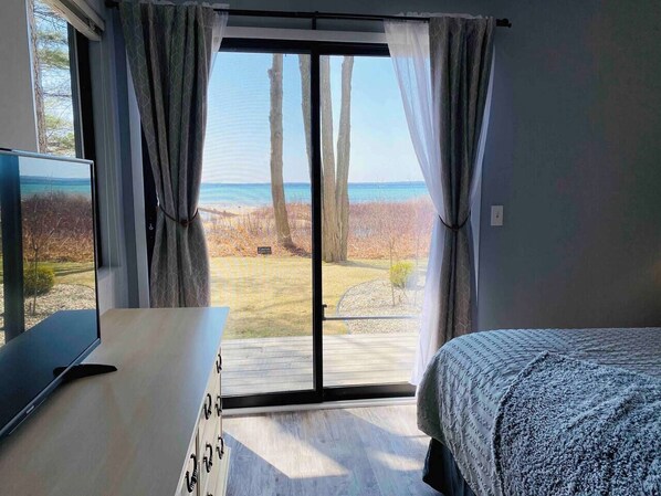 7 minutes to Equestrian Festival! Located on Traverse City`s beautiful East Bay this condo is right on the water! Enjoy beautiful views of the bay from the living room, bedroom and private front patio. Minutes from downtown Traverse City, wineries, and so much more. Visit some of our award winning wineries or sit down and enjoy some fine crafted micro brews. Enjoy relaxing in the sun on 600ft of private sandy beach frontage or rent a kayak, jet skis, or paddle board.
