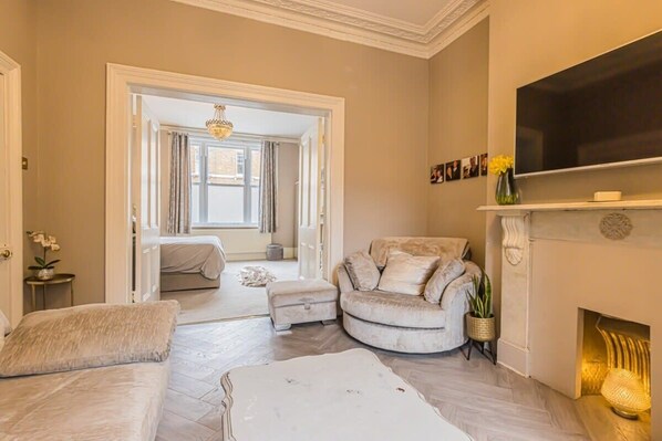 - Comfortable living room with smart TV