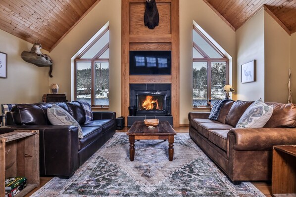 You'll end up gravitating to the outdoors at some point during your stay and appreciate the expansive fire pit with the surrounding Adirondack chairs , new permanent dock, swim raft, and kayaks/paddleboards provided.