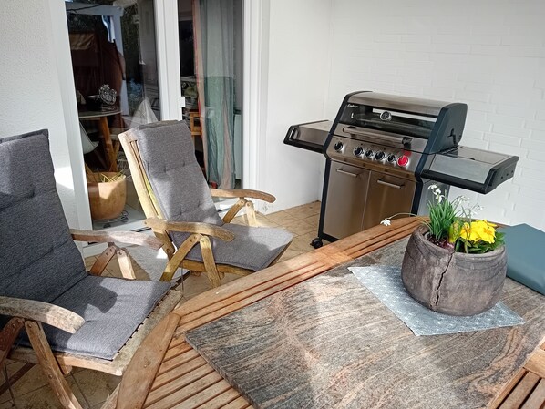 Terrace/patio - Welcome to the vacation home "Minzhuus" (Wurster Nordseeküste)