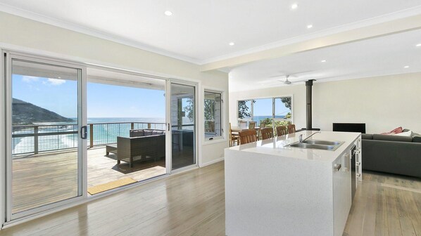 Take your pick of living spaces or bedrooms and you will soon see why Sands End is named as such. Without exception, every room in the house feels like you are standing at the end of the beach. In coastal holiday terms, Sands End boasts all the key elements. 5 minute stroll to the beach. Elevated high enough to have stunning views but not too high to make a beach trip feel like a full blown workout. Space, both inside and out, to come together or find time alone.