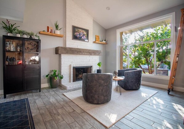 Arrive and relax in this calm, stylish space. Newly remodeled bathrooms! Additional photos coming soon. We designed this home to be comfortable, relaxing, and modern. BBQ poolside, enjoy the hot tub at night, use the high speed wifi, or just relax by one of the two fireplaces. Spread out or congregate in the inviting kitchen, charge your EV and use the office to work remotely.