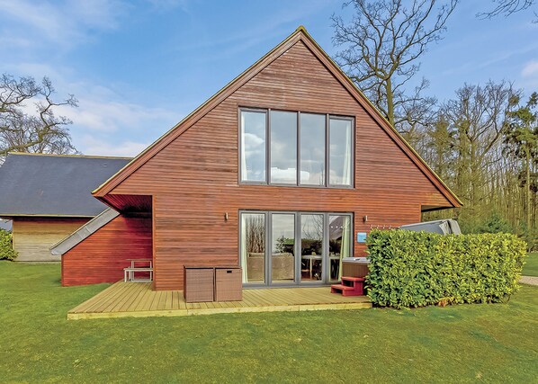 Super stylish, luxury, modern two storey lodge with contemporary interior design. The ground floor comprises of walk-in shower with rainfall head, a light, spacious, stylish open-plan living area with comfortable sofas looking on to the decking, kitchen area with breakfast bar and dining area. The patio doors open onto decking perfect for enjoying the views and with your own bubbling hot tub. On the first floor is a light, airy master double with en suite walk-in shower and one twin also with large picture window letting the light flood in. Pets allowed in selected accommodation only.