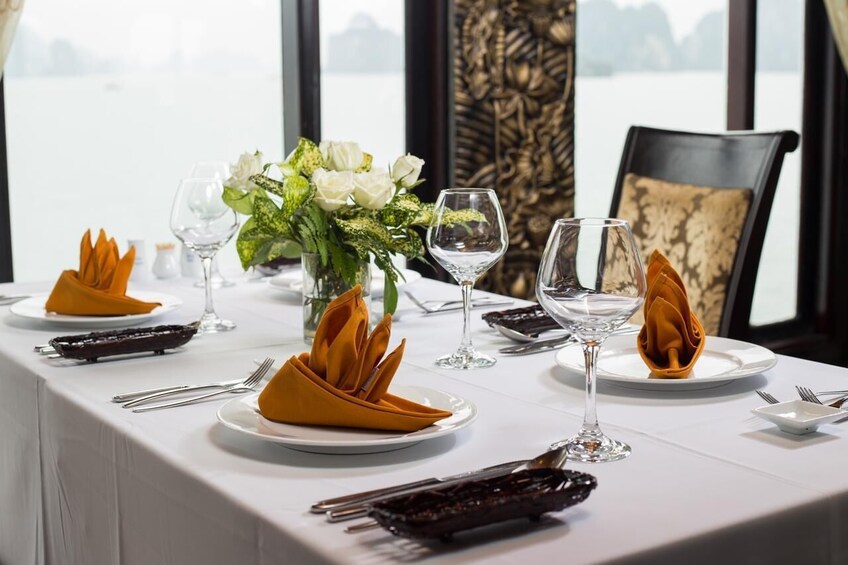 - Meals onboard are fusion: Vietnamese, seafood & international. Guests should provide us with any special food preferences, allergies or dietary requirements at least 3 days prior to the departure date.