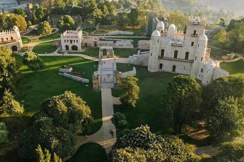 Arrive in Gondar by flight, known as the "Camelot of Africa" for its rich history and stunning architecture. Begin your day by visiting the Fasil Ghebbi (Royal Enclosure), a UNESCO World Heritage site that includes the 17th-century castles built by Emperor Fasilides and his successors. These magnificent structures showcase the grandeur of Ethiopia's royal past. Next, explore Fasilides’ Bath, an ancient site used for the Timkat festival, where locals celebrate Epiphany with vibrant processions and rituals. After a delicious lunch at a local restaurant, continue your exploration by visiting Debre Birhan Selassie Church, renowned for its striking ceiling adorned with intricate paintings of angels. The vibrant frescoes and religious artwork make this church one of the most notable in Ethiopia. In the evening, enjoy free time at Goha Hotel or another hilltop location, where you can relax and take in the breathtaking sunset view over Gondar's stunning landscape.