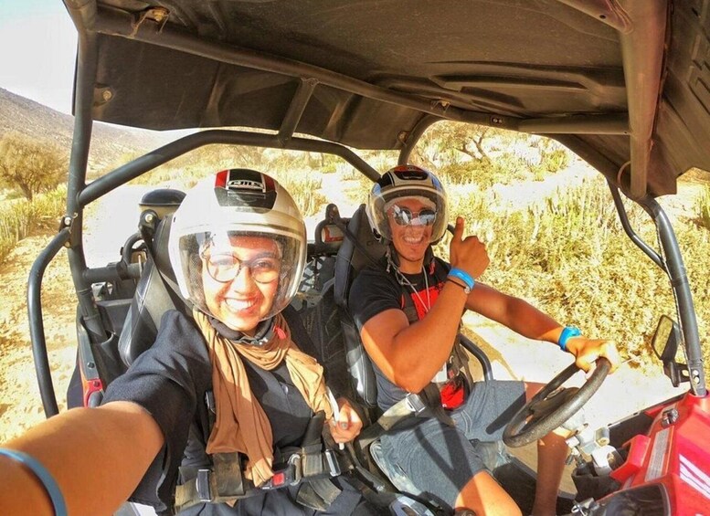 Dive into the adventure of a lifetime with our Agafay Buggy experience near Agadir, where the stunning landscapes of the Atlas Mountains serve as your playground! Start your day with a scenic drive through majestic mountain vistas, setting the stage for the excitement to come. Once you arrive, you’ll be greeted in a traditional Berber tent, where you can familiarise yourself with your Buggy and enjoy a brief trial ride to get comfortable. With a skilled guide leading the way, you’ll navigate through rugged terrain, weaving through the breathtaking scenery while keeping an eye out for the iconic goats perched in the argan trees, a delightful sight that adds to the charm of the journey. Take a moment to catch your breath and immerse yourself in the local culture as you sip on refreshing Moroccan mint tea, served in the warmth of a Berber tent. This unique blend of adventure and cultural connection creates an unforgettable experience, filled with laughter, stunning views, and lasting memories. Whether you're an experienced rider or a first-timer, our Agafay Buggy adventure promises thrills and excitement at every turn. Book your journey today and discover the magic of Morocco like never before!