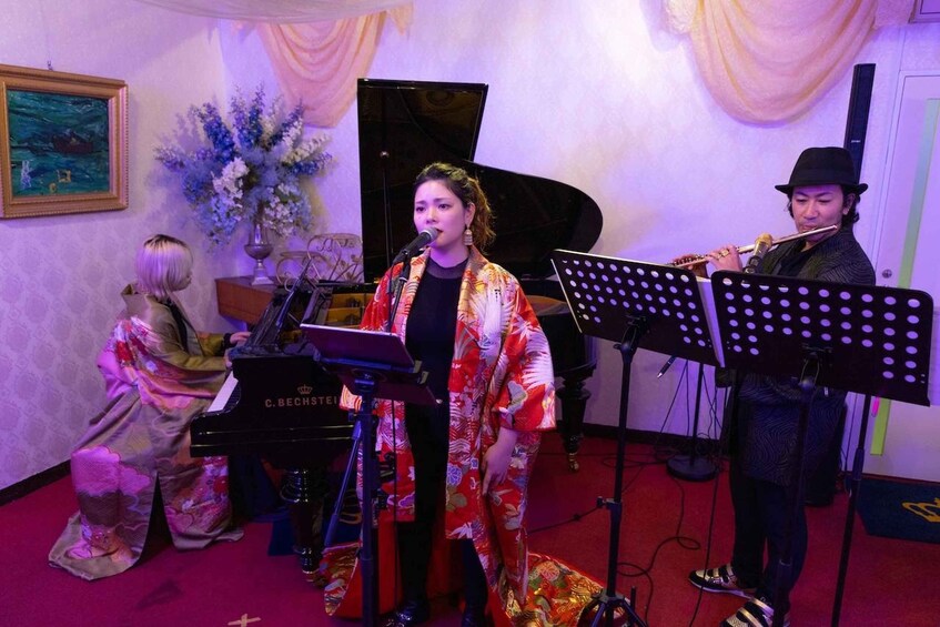 Enjoy an intimate, heartwarming musical evening in the centre of Tokyo. Listen to famous anime melodies performed live on piano, flute, and vocals.