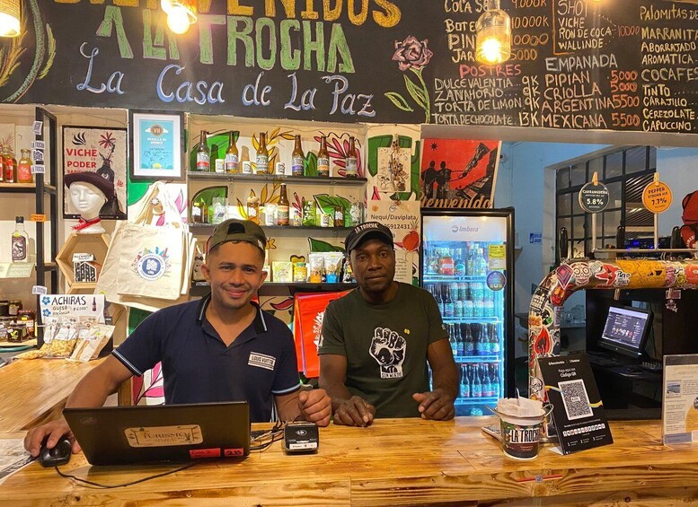 Travel across the city on the iconic TransMilenio to La Trocha Casa de la Paz, a vibrant space run by former FARC combatants who have transformed their past into a mission for peace. Here, you’ll get to taste viche, a powerful ancestral sugarcane spirit, and engage in eye-opening conversations with those who are now shaping a new, hopeful chapter for Colombia.