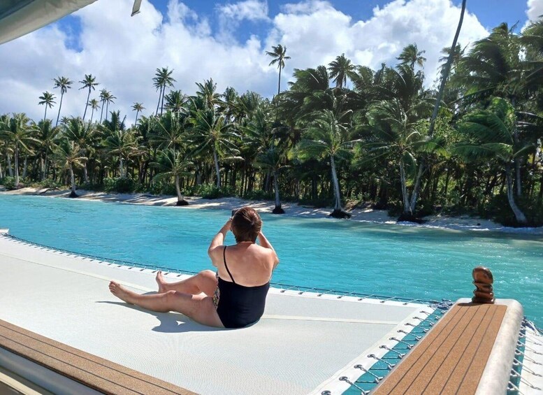 Apetahi day trip around Raiatea on a modern outrigger canoe