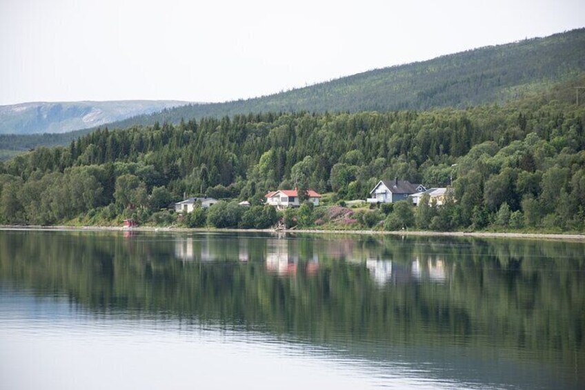 We’ll depart from the city centre and head south, cycling along the scenic coastal roads of Tromsøya. Along the way, we’ll pass through charming city streets, peaceful forest trails, and breathtaking waterfront paths, offering stunning views of the surrounding fjords and majestic mountains.