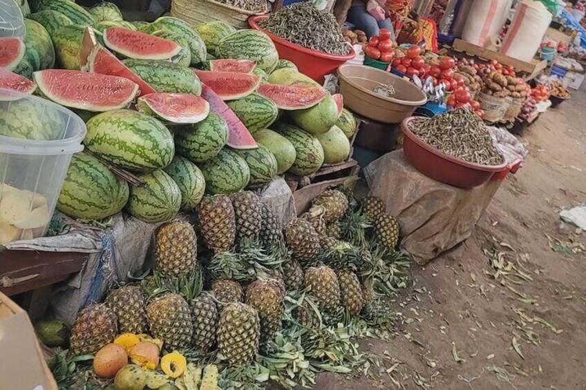 The Arusha Central Market is the heartbeat of the city, alive with colour, sounds, and the energy of daily local life. As we step inside, you’ll be surrounded by stalls overflowing with fresh fruits, vegetables, grains, and spices, as well as everyday essentials that locals come to buy.